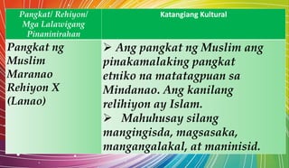 Magsilbing dekorasyon at palamuti B. Mga pangkat etniko sa pilipinas ang malayang. Ang karamihan sa populasyon ng pangkat at pawang Austranesyano mula sa relihiyong Animismo Hunduismo Budismo o Islam na naglipat ng relihiyong Kristyanismo sa panahon ng pagsakop ng mga Kastila.