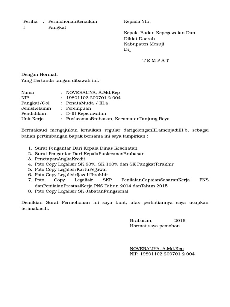 Surat Permohonan Naik Pangkat Pdf