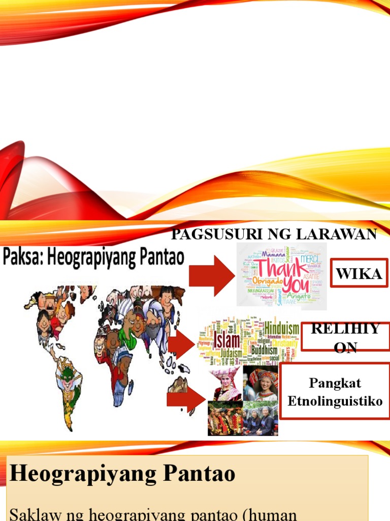 Ang perlas ng silangan hindi lang mayaman sa likas na yaman kundi mayabong din ang kultura at malaking bahagi nito ang pangkat etniko sa Pilipinas. Piliin ang titik ng tamang sagot. Teorya ng tulay na lupa land bridge-isang teorya hinggil sa pinagmulan ng mga Pilipino ito ay naniniwala na mahalaga ang papel ng tulay na lupa sa pagdating ng mga unang tao sa kapuluanteorya ng pandarayuhan -kilala rin sa taguring Waves of Migration Theory isang teorya ito hinggil sa pinagmulan ng mga Pilipino kung saan pinaniniwalaan na may tatlong pangkat.