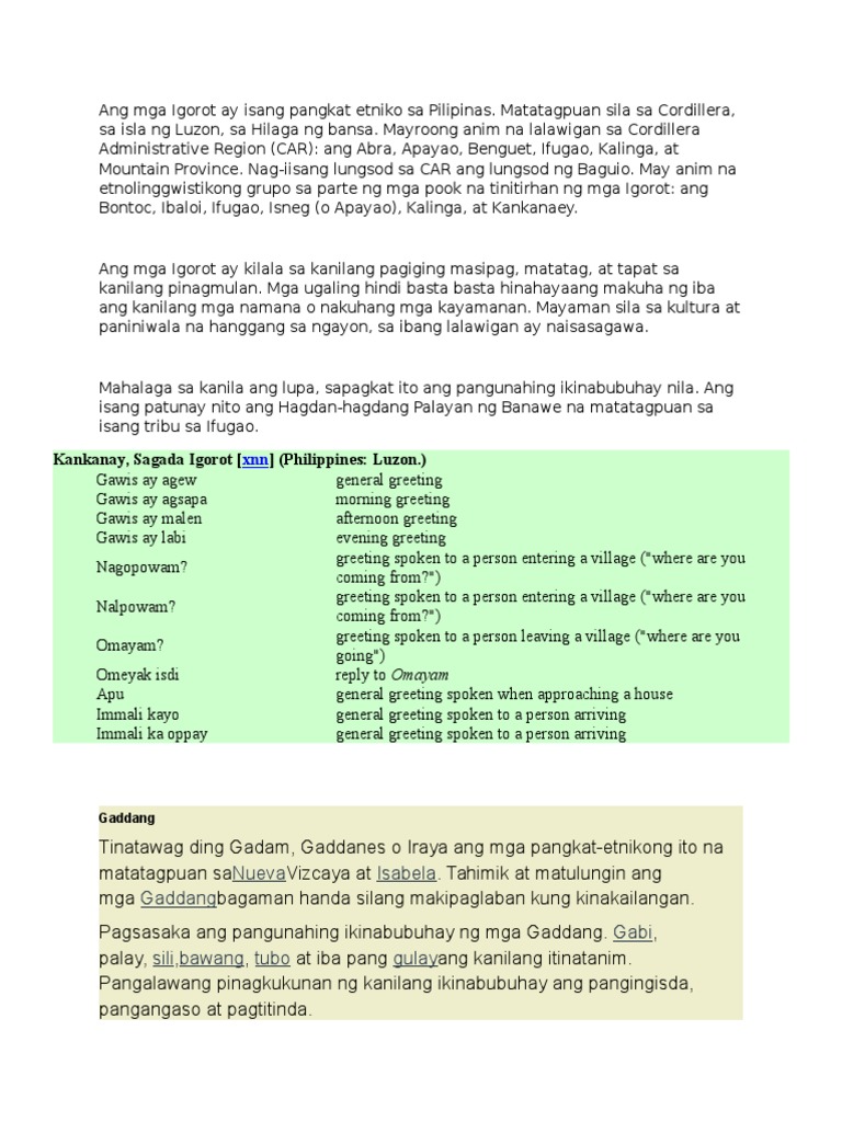 Ang Mga Igorot Ay Isang Pangkat Etniko Sa Pilipinas Pdf